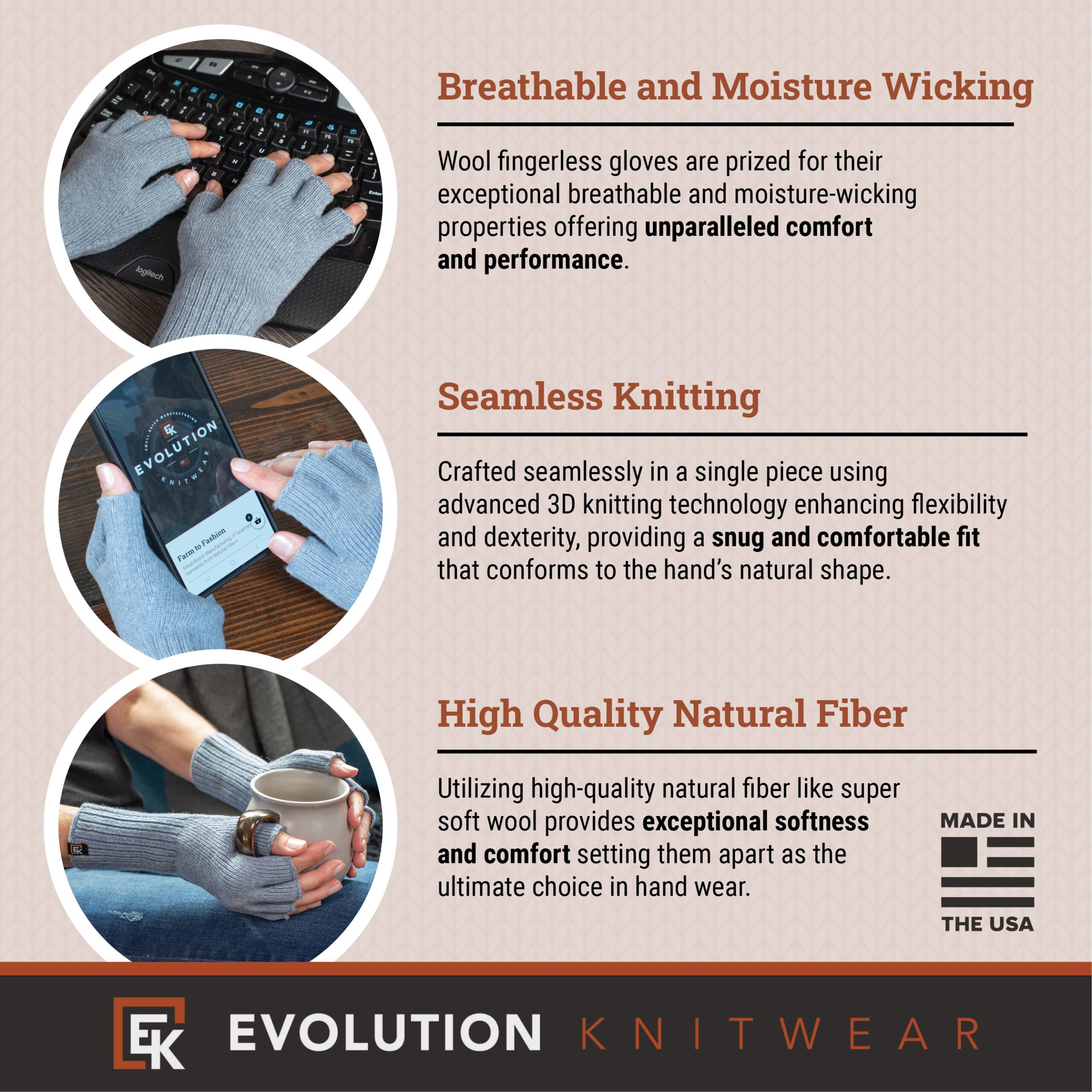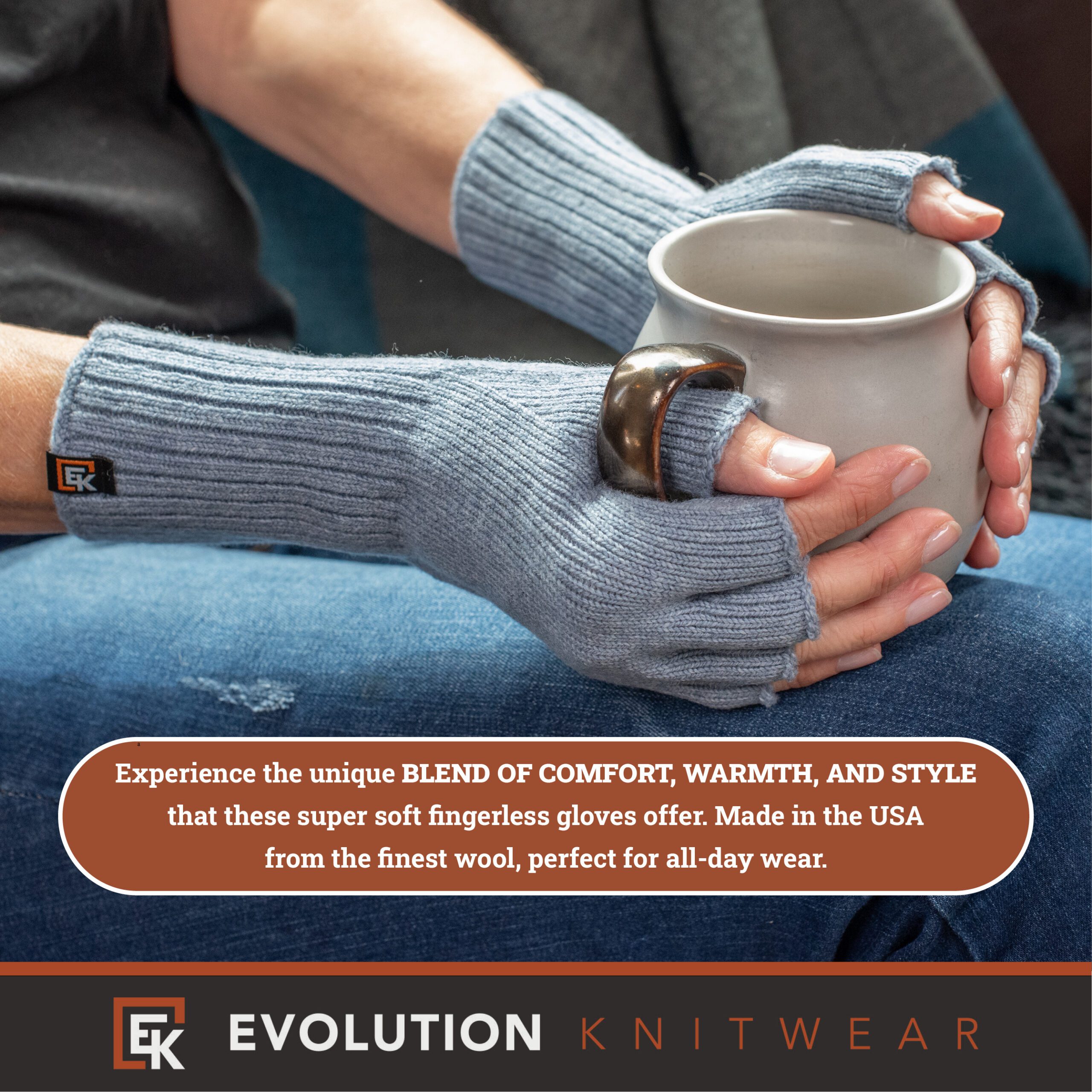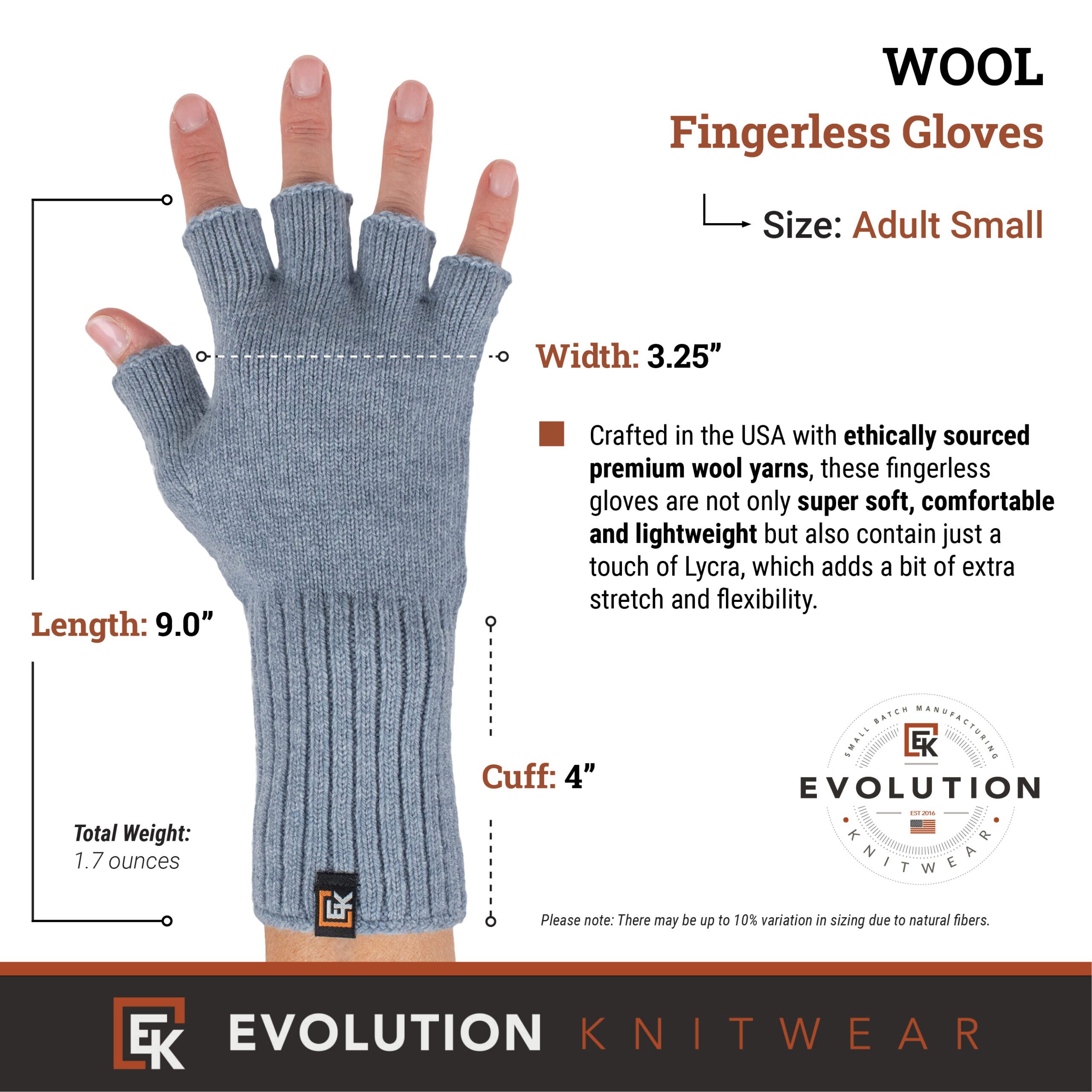 Wool Knit Fingerless Gloves – Made in the USA – Super Soft Merino Wool – Small