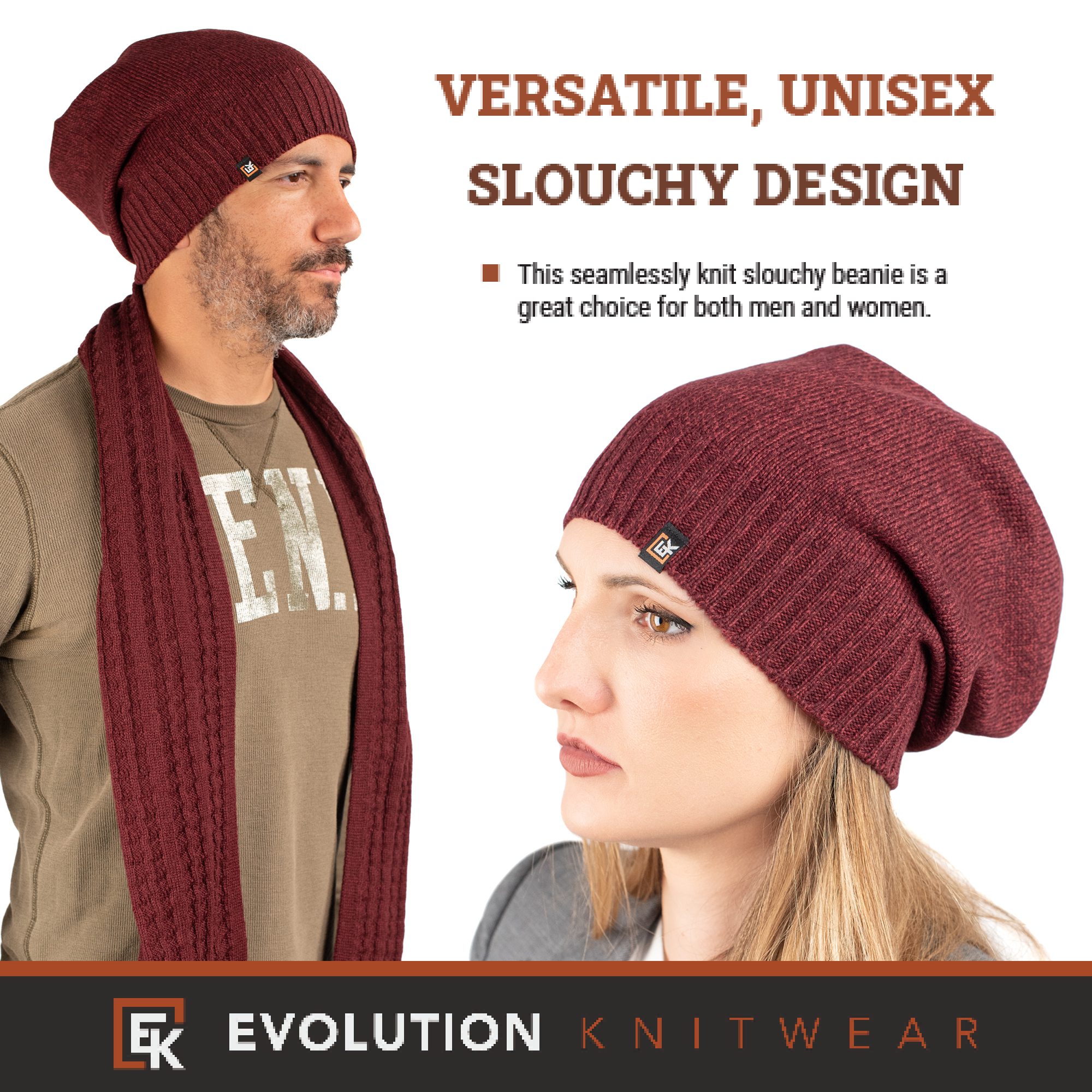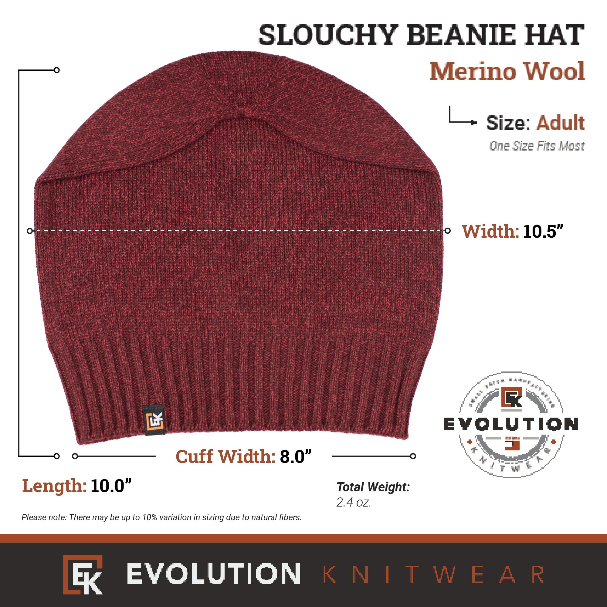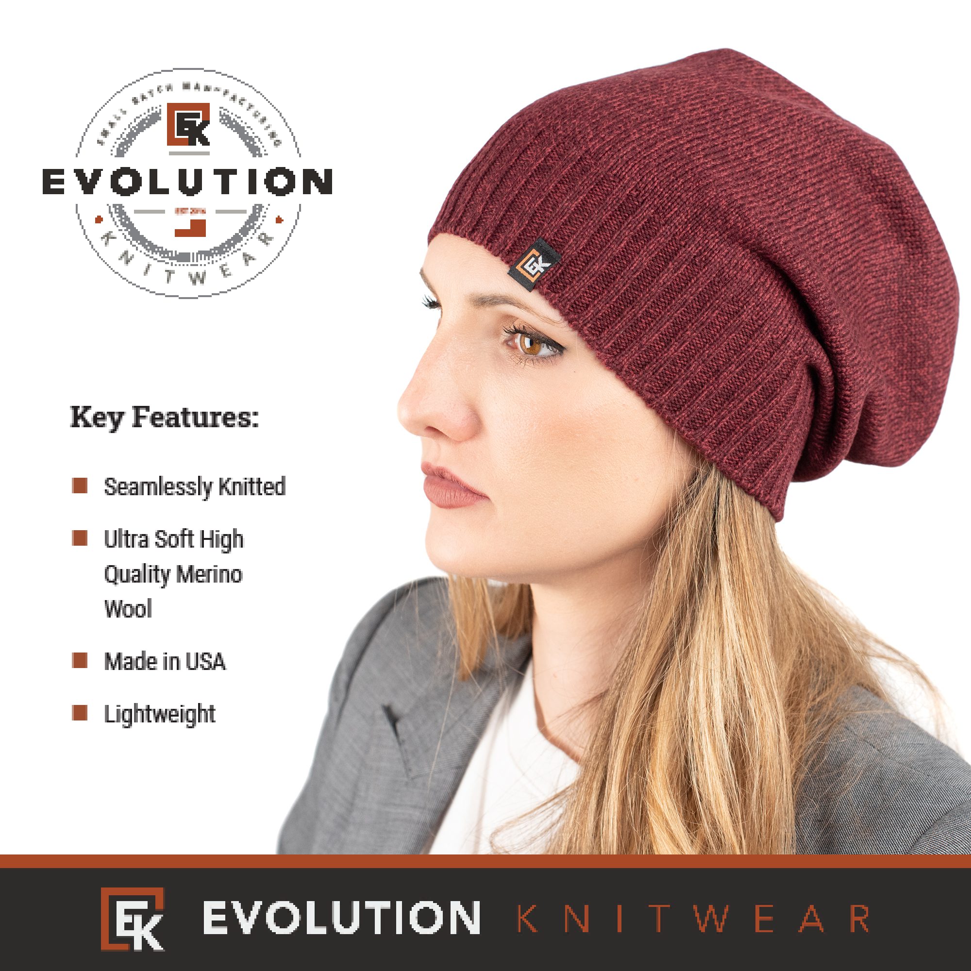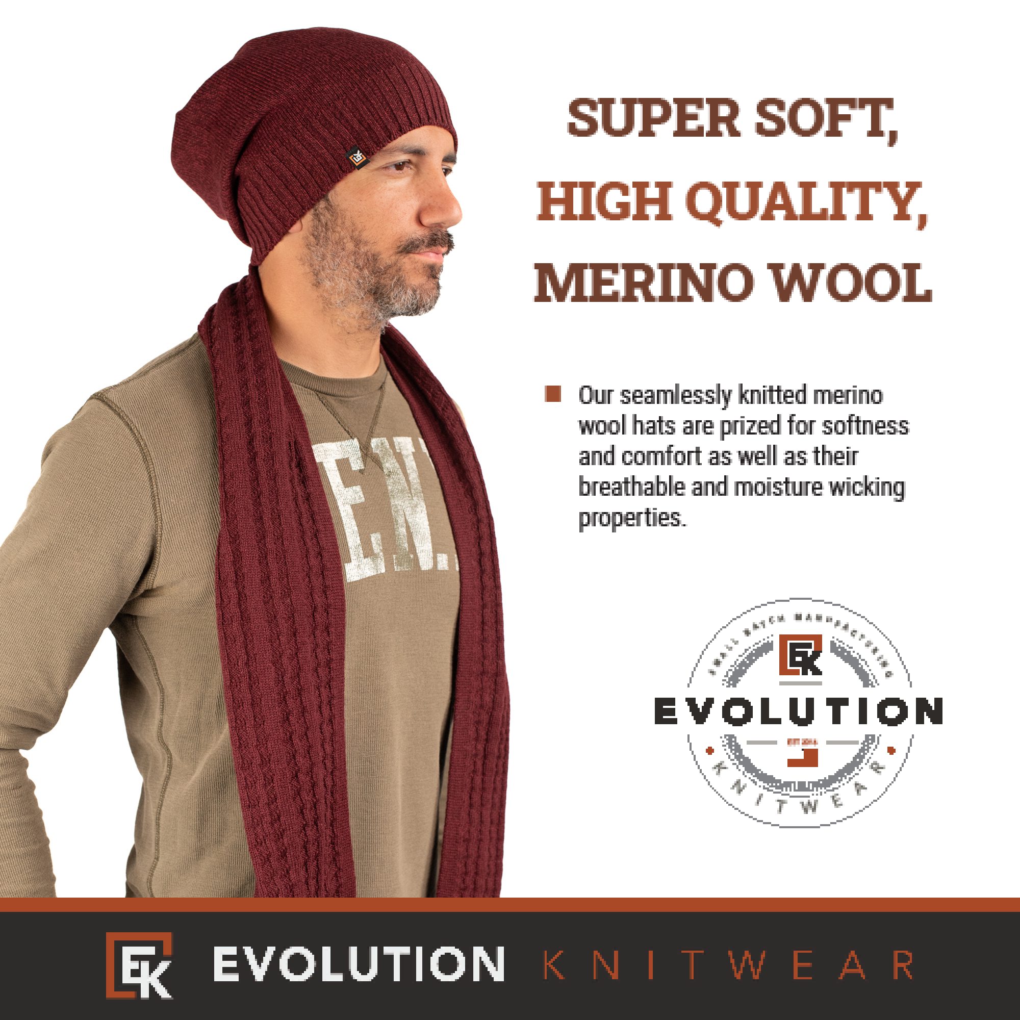 Wool Slouchy Knit Beanie Hat – Super Soft Merino Wool – Made in the USA – Men’s or Women’s